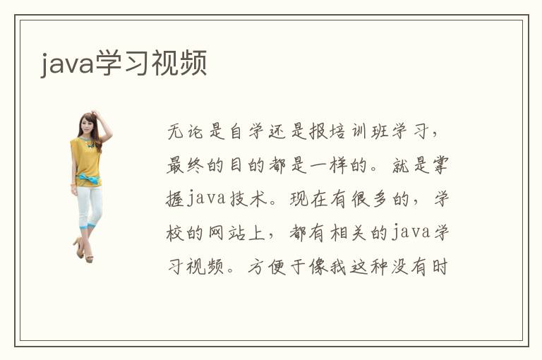 無論是自學(xué)還是報培訓(xùn)班學(xué)習(xí),最終的目的都是一樣的。就是掌握java技術(shù)?,F(xiàn)在有很多的,學(xué)校的網(wǎng)站上,都有相關(guān)的java學(xué)習(xí)視頻。方便于像我這種沒有時間去學(xué)習(xí),技術(shù)的人來去觀看。我最開始學(xué)習(xí)的時候。連java最基本的定義都不知道!但是通過觀看一段時間的學(xué)習(xí)視頻之后。我慢慢的掌握了很多java專業(yè)知識。從最開始的不懂到現(xiàn)在的大懂,中間也就經(jīng)歷了幾個月的時間。可能java這種編程需要比其他的編程需要要好學(xué)的多吧。所以說我沒有覺得,觀看學(xué)習(xí)java需要花大量時間。反而我覺得這大大減少了我的時間。比起利用全天的時間破的,培訓(xùn)班里面學(xué)習(xí),我更加的喜歡這種觀看視頻的學(xué)習(xí)方式??梢宰约鹤詩首詷返?,輕輕松松的學(xué)習(xí)知識。