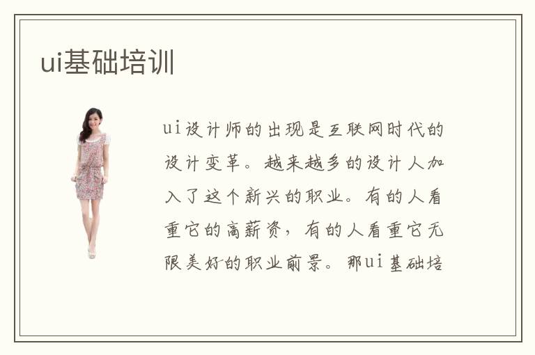 ui設計師的出現(xiàn)是互聯(lián)網(wǎng)時代的設計變革。越來越多的設計人加入了這個新興的職業(yè)。有的人看重它的高薪資,有的人看重它無限美好的職業(yè)前景。那ui基礎培訓需要學什么呢。首先需要先搞懂ui是什么。ui就是User Interface首字母縮寫。翻譯的意思就是用戶界面。在互聯(lián)網(wǎng)時代,主要指圖形用戶界面。既然是圖形用戶界面,當然是給用戶使用。當我們使用電腦。眼睛看到的每一個部分。都叫圖形用戶界面。所以,ui是指幫助人與機器打交道用的圖形界面。是一個溝通的媒介。例如。手機系統(tǒng)界面,軟件界面。網(wǎng)站的界面。K游戲操作界面。智能電視界面。等等。這些領(lǐng)域都需要ui設計師。ui基礎知識非常的重要。經(jīng)過基礎培訓才能掌握這些,軟件的設計。
