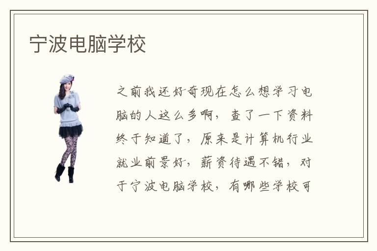 之前我還好奇現(xiàn)在怎么想學(xué)習(xí)電腦的人這么多啊,查了一下資料終于知道了,原來是計(jì)算機(jī)行業(yè)就業(yè)前景好,薪資待遇不錯(cuò),對于寧波電腦學(xué)校,有哪些學(xué)??梢酝扑]這個(gè)問題,我就如實(shí)說一下,當(dāng)然我不是那個(gè)培訓(xùn)機(jī)構(gòu)的拖啊,就個(gè)人情況說一下,我當(dāng)時(shí)大學(xué)學(xué)的是物流管理專業(yè),畢業(yè)后找工作沒有適合自己的,很多物流行業(yè)開始實(shí)習(xí)都要上夜班在一線工作的,不是吃不了苦,真的是不合適女生,后面家里就讓去一個(gè)寧波電腦學(xué)校學(xué)計(jì)算機(jī),剛剛開始,概念都搞不清楚,聽課效率低下,后期面臨就業(yè),還是下了一翻功夫的,勉勉強(qiáng)強(qiáng)才拿到畢業(yè)證,幸運(yùn)的是,找工作居然找到了,在一個(gè)研發(fā)電子產(chǎn)品的外包公司上班,薪資現(xiàn)在還可以,不過還是很累的,所以如果你是女生就要好好考慮一下這個(gè)專業(yè)了,如果是男生,你可以學(xué)習(xí)java開發(fā),大數(shù)據(jù)分析這類的