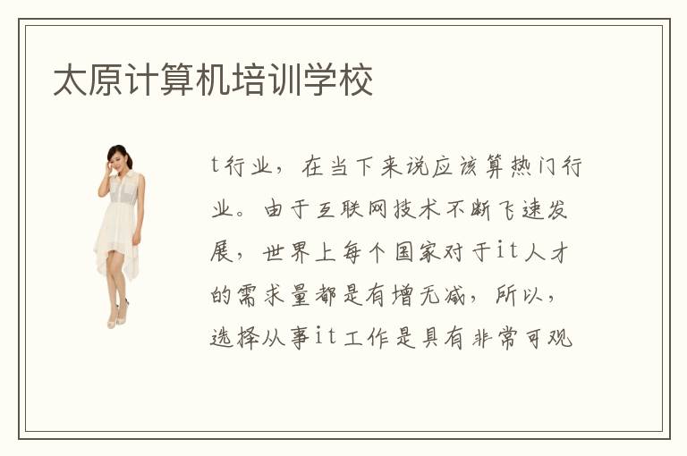 t行業(yè),在當(dāng)下來(lái)說(shuō)應(yīng)該算熱門行業(yè)。由于互聯(lián)網(wǎng)技術(shù)不斷飛速發(fā)展,世界上每個(gè)國(guó)家對(duì)于it人才的需求量都是有增無(wú)減,所以,選擇從事it工作是具有非??捎^的前景的。it配置,也就是我們常說(shuō)的計(jì)算機(jī)培訓(xùn)。太原計(jì)算機(jī)培訓(xùn)計(jì)算機(jī)培訓(xùn)學(xué)校,目前為止,太原市有非常多的從事it培訓(xùn)的學(xué)校,至少上百家。那么太原計(jì)算機(jī)培訓(xùn)學(xué)校哪里最好?其實(shí)這個(gè)問(wèn)題不太好具體回答。因?yàn)樘械膹氖掠?jì)算機(jī)培訓(xùn)的學(xué)校中,其中包括了個(gè)人成立的培訓(xùn)機(jī)構(gòu),也包括有高職院校的it計(jì)算機(jī)科系。像比較知名的有,。火星,北大青鳥,太原計(jì)算機(jī)學(xué)校,等等。他們有著不同的教學(xué)風(fēng)格。但是這些學(xué)校的教學(xué)質(zhì)量大都是不錯(cuò)的,但是具體在選擇時(shí),同學(xué)們還是要仔細(xì)了解一下再做決定。選擇最適合那所自己的學(xué)校才是最重要的。