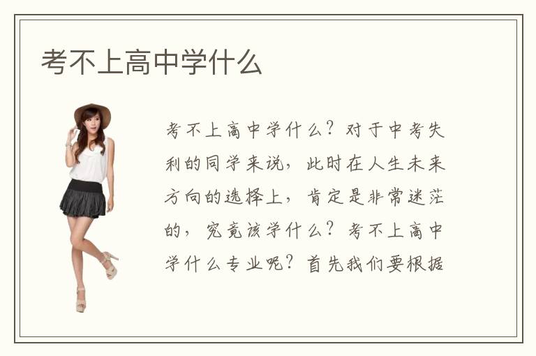 考不上高中學什么?對于中考失利的同學來說,此時在人生未來方向的選擇上,肯定是非常迷茫的,究竟該學什么?考不上高中學什么專業(yè)呢?首先我們要根據(jù)自己的愛好來挑選學習的技能。比如對數(shù)字敏感,可以從事計算機、會計工作。如果對文科感興趣,可以選擇藝術設計,或者外語專業(yè)。都是不錯的選擇。如果不確定自己在哪方面是特長,或者說自己對哪方面的專業(yè)知識接收的都比較快,那么可以從當前熱門的行業(yè)來選擇。比如計算機、平面設計、電子商務、商務外語等等??疾簧细咧袑W什么好就業(yè)?就業(yè)應該是同學們最為關心的問題之一,學習技術說到底就是希望借此來立足社會。其實,根本不存在哪個行業(yè)是絕對的好就業(yè),只是相關從業(yè)者的多與少。如果你對自己專業(yè)技能的掌握比其他人更優(yōu)秀,那么你在就業(yè)時肯定會優(yōu)先于他人。相反如果技術平庸,那么即使就業(yè)機會再多,也會格外吃力。所以同學們應該把重心放在專業(yè)技能的學習上,做到學懂弄通。