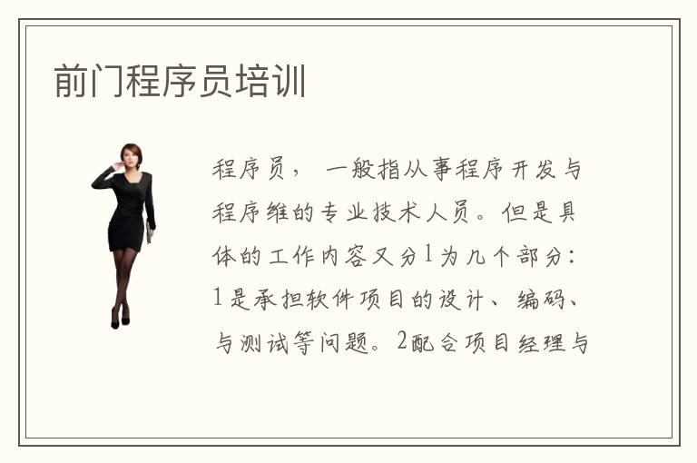 程序員, 一般指從事程序開發(fā)與程序維的專業(yè)技術(shù)人員。但是具體的工作內(nèi)容又分l為幾個部分:1是承擔(dān)軟件項目的設(shè)計、編碼、與測試等問題。2配合項目經(jīng)理與客戶進(jìn)行有效溝通,維護(hù)良好的客戶關(guān)系。3熟練掌握軟件開發(fā)技術(shù)。4參與項目的需求調(diào)查研究等一系列軟件開發(fā)項目的問題。這些就是程序員的基本工作內(nèi)容。想成為一名優(yōu)秀的程序員,一不但要有豐富的計算機(jī)知識。并且還要通過“軟考”。即計算機(jī)軟件水平考試,并取得ceqc證書,證書在全國均有效。然后就可以從事程序開發(fā)相關(guān)工作。程序員考試對報考者年齡、學(xué)歷、等均無要求,但是要有扎實的計算機(jī)基礎(chǔ)。個人學(xué)習(xí)程序開發(fā)有兩種途徑,一是自學(xué),二是報名培訓(xùn)學(xué)校。自學(xué)的話雖然成本低,但是對于時間方面付出比較多,而且學(xué)習(xí)周期長,遇到難題無法在第一時間內(nèi)解決,極容易“走彎路”相反筆者更推薦報名培訓(xùn)機(jī)構(gòu)。前門程序員培訓(xùn)。前門作為北京市的中心地段,附近自然有多家it教育機(jī)構(gòu)。前門程序員培訓(xùn)學(xué)校。目前前門附近比較知名的it培訓(xùn)學(xué)校是北大青鳥,他是一家連鎖教育機(jī)構(gòu),前門附近的是他的總校區(qū)。前門程序員培訓(xùn)學(xué)校收費。北大青鳥作為一家連鎖機(jī)構(gòu),在學(xué)費價格全國都是相同的,并且是透明的,同學(xué)們這點不用擔(dān)心。