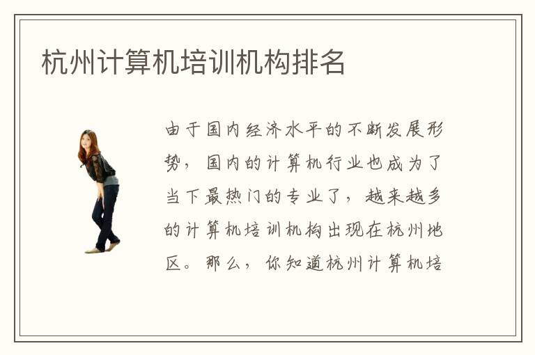 由于國內(nèi)經(jīng)濟水平的不斷發(fā)展形勢,國內(nèi)的計算機行業(yè)也成為了當(dāng)下最熱門的專業(yè)了,越來越多的計算機培訓(xùn)機構(gòu)出現(xiàn)在杭州地區(qū)。那么,你知道杭州計算機培訓(xùn)機構(gòu)排名嗎?就綜合實力而言,北大青鳥計算機培訓(xùn)機構(gòu)自然是杭州計算機培訓(xùn)機構(gòu)排名中名列前茅的,北大青鳥計算機培訓(xùn)機構(gòu)是國內(nèi)一流的it教育品牌機構(gòu),是一家各方面綜合實力很強的專業(yè)計算機培訓(xùn)學(xué)校。