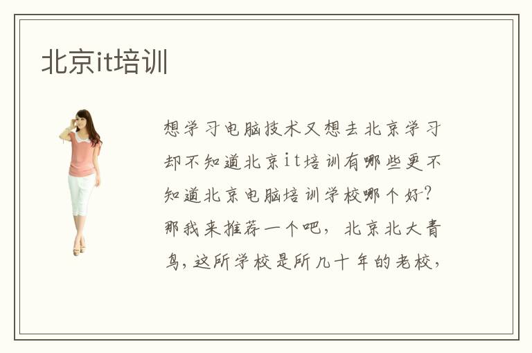 想學(xué)習(xí)電腦技術(shù)又想去北京學(xué)習(xí)卻不知道北京it培訓(xùn)有哪些更不知道北京電腦培訓(xùn)學(xué)校哪個(gè)好?那我來(lái)推薦一個(gè)吧,北京北大青鳥(niǎo),這所學(xué)校是所幾十年的老校,在北京it培訓(xùn)排名中它最靠前,這所學(xué)校教學(xué)課程全面覆蓋,不同的校區(qū)有著不同的教學(xué)理念,和不同的教學(xué)氛圍,學(xué)生可在學(xué)習(xí)過(guò)程中相互穿插體驗(yàn),就業(yè)之前會(huì)有相關(guān)的就業(yè)指導(dǎo)教師對(duì)你一對(duì)一的指導(dǎo)因此獲得好多家長(zhǎng)的稱贊,有好多企業(yè)也是很認(rèn)可這所學(xué)校,自建校以來(lái)往社會(huì)輸送的人才5萬(wàn)余人,這是北京it培訓(xùn)最成功的案列,如果你認(rèn)為學(xué)習(xí)電腦技術(shù)特別的枯燥那就來(lái)北京電腦培訓(xùn)學(xué)校進(jìn)行學(xué)習(xí),北京的電腦學(xué)校教學(xué)模式都是非常有趣的,當(dāng)你對(duì)電腦技術(shù)有了興趣你才會(huì)好好去學(xué)習(xí),將來(lái)工作上面也會(huì)順風(fēng)順?biāo)?,成為這方面的人才說(shuō)話也會(huì)有底氣,北京it培訓(xùn)會(huì)實(shí)現(xiàn)你的夢(mèng)想。2018最火熱的行業(yè)當(dāng)屬計(jì)算機(jī)行業(yè),計(jì)算機(jī)方面的工作人員不但工資待遇高還總是令人羨慕,什么大數(shù)據(jù)、什么微軟、給人聽(tīng)起來(lái)就高大上,所以要想學(xué)技術(shù)就得迎合當(dāng)今社會(huì)最看中的技術(shù),而計(jì)算機(jī)技術(shù)去哪里學(xué)最好?當(dāng)然是祖國(guó)的首都北京啦,北京it培訓(xùn)在計(jì)算機(jī)技術(shù)方面是最專業(yè)的。在這個(gè)電子產(chǎn)品暢行的時(shí)代你再不學(xué)習(xí)就會(huì)落后的,學(xué)習(xí)it技術(shù)會(huì)讓你的工作升職加薪不再是夢(mèng)想。了解北京計(jì)算機(jī)培訓(xùn)計(jì)算機(jī)培訓(xùn)機(jī)構(gòu)也是給自己個(gè)機(jī)會(huì),一個(gè)月薪7000,8000的機(jī)北京it培訓(xùn)如何會(huì)。不要總是羨慕別人,為什么一樣的工作你的工資最低?就是因?yàn)槟銢](méi)有過(guò)硬的技術(shù),你的同事同學(xué)都在學(xué)習(xí)計(jì)算機(jī)知識(shí)而你卻不以為然,所以機(jī)會(huì)都是給有準(zhǔn)備的人的。要不然你這輩子就只能拿著這點(diǎn)死工資度日了。眾所周知當(dāng)今社會(huì)最稀缺的人才就屬計(jì)算機(jī)專業(yè)的人才,計(jì)算機(jī)專業(yè)有it、it、大數(shù)據(jù)計(jì)算,這些技術(shù)看起來(lái)感覺(jué)好難學(xué)的樣子,所以現(xiàn)在很多年輕人都在報(bào)計(jì)算機(jī)培訓(xùn)班,這樣有了專業(yè)的老師指導(dǎo)學(xué)習(xí)起來(lái)就簡(jiǎn)單多了,學(xué)習(xí)計(jì)算機(jī)技術(shù)就是為了與時(shí)俱進(jìn),而北京it培訓(xùn)都很不錯(cuò),在北京交通發(fā)達(dá),接觸的人和事都是不一樣的,北京的計(jì)算機(jī)培訓(xùn)班教學(xué)水平都是非常之高的,與其你自己在家學(xué)習(xí)不如去培訓(xùn)班,叫上同事朋友一起報(bào)個(gè)培訓(xùn)班學(xué)習(xí)一門技術(shù),培養(yǎng)一些興趣開(kāi)開(kāi)心心的學(xué)習(xí)計(jì)算機(jī)技術(shù),把自己不會(huì)的領(lǐng)域補(bǔ)充一下,再想升職加薪不是問(wèn)題,畢竟現(xiàn)在的工作都離不開(kāi)電腦,所以計(jì)算機(jī)技術(shù)是很實(shí)用的,當(dāng)你有了一門最受歡迎的技術(shù)你會(huì)發(fā)現(xiàn)你的人生從此開(kāi)了掛。