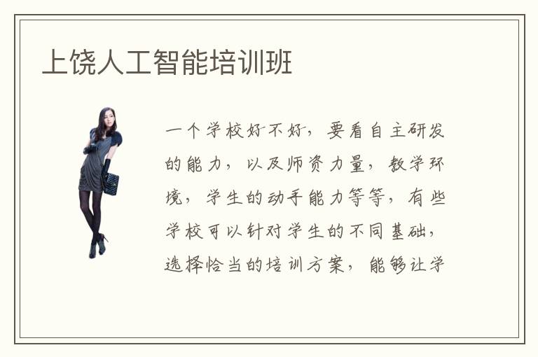 一個學(xué)校好不好,要看自主研發(fā)的能力,以及師資力量,教學(xué)環(huán)境,學(xué)生的動手能力等等,有些學(xué)校可以針對學(xué)生的不同基礎(chǔ),選擇恰當?shù)呐嘤?xùn)方案,能夠讓學(xué)生在學(xué)習(xí)過程中變得非常輕松,也可以減少壓力,保障學(xué)習(xí)的效率。上饒人工智能培訓(xùn)人工智能培訓(xùn)班師資好不好,師資力量好不好要看每個人選擇的老師教學(xué)的經(jīng)驗,專業(yè)的水準。有些老師確實是擁有良好的優(yōu)勢,教學(xué)素養(yǎng)也非常高,負責任到底,能夠及時將重要的知識點傳授給學(xué)生。上饒人工智能培訓(xùn)班學(xué)習(xí)效率大多數(shù)都是非常優(yōu)越的,如果學(xué)校的教學(xué)方法不是特別好,那么學(xué)習(xí)效率會受到干擾。上饒人工智能培訓(xùn)班畢業(yè)率高嗎,大多數(shù)學(xué)生選擇人工智能培訓(xùn)班,就是為了提高就業(yè)優(yōu)勢,而這些學(xué)生在學(xué)成之日,往往就能夠收到更多企業(yè)的通知書。