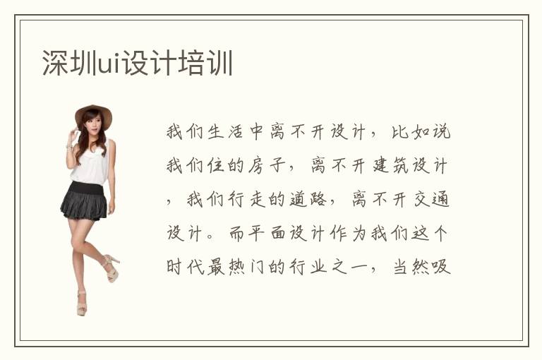 我們生活中離不開設(shè)計(jì),比如說我們住的房子,離不開建筑設(shè)計(jì),我們行走的道路,離不開交通設(shè)計(jì)。而平面設(shè)計(jì)作為我們這個(gè)時(shí)代最熱門的行業(yè)之一,當(dāng)然吸引了不少的人。很多人都想要入門平面設(shè)計(jì),從而其中一部分人選擇去深圳ui設(shè)計(jì)培訓(xùn)班學(xué)習(xí)平面設(shè)計(jì)相關(guān)知識(shí)。因?yàn)樯钲趗i設(shè)計(jì)培訓(xùn)水平很高,所以深圳ui設(shè)計(jì)培訓(xùn)班也特別多,以至于很多在選擇培訓(xùn)班的時(shí)候不知所措,不知道該選擇哪一個(gè)好。因?yàn)樯钲趗i設(shè)計(jì)培訓(xùn)能力突出,所以在深圳學(xué)平面設(shè)計(jì)是一個(gè)不錯(cuò)的選擇。不過我們?cè)谶x擇深圳ui設(shè)計(jì)培訓(xùn)班的時(shí)候,要多看看,選擇資歷比較深的,教師資源比較豐富的學(xué)校。深圳不僅培訓(xùn)技術(shù)高,而且行業(yè)前景也特別高,很多在深圳的公司都特別需要平面設(shè)計(jì)師,所以說去深圳學(xué)平面設(shè)計(jì)是一個(gè)比較不錯(cuò)的選擇。ui技術(shù)行業(yè)是一個(gè)人才稀缺的行業(yè),這個(gè)專業(yè)待遇優(yōu)厚,工資很高,深受大家的喜愛。在這個(gè)電子產(chǎn)品發(fā)展的時(shí)代,你要是不會(huì)一些計(jì)算機(jī)技術(shù),那這樣的就是太落伍了。ui技術(shù)是計(jì)算機(jī)技術(shù)里面其中的一個(gè)專深圳ui設(shè)計(jì)培訓(xùn)好不好業(yè)。這枚技術(shù)聽起來可能不太理解,但是學(xué)起來是很簡單的。深圳ui設(shè)計(jì)培訓(xùn)就是為了培養(yǎng)這方面的人才,而深圳的ui培訓(xùn)機(jī)構(gòu)還是挺多的,這些機(jī)構(gòu)教學(xué)經(jīng)驗(yàn)豐富,教學(xué)設(shè)備先進(jìn),老師們也都是專業(yè)的人才。在這里學(xué)習(xí)起來更輕松,更快。許多來自全國各地的人都在這里培訓(xùn)學(xué)習(xí)。深圳ui設(shè)計(jì)培訓(xùn),技術(shù)還是相當(dāng)不錯(cuò)的,每年這些機(jī)構(gòu)都往社會(huì)輸送很多人才。培養(yǎng)了一批又一批的學(xué)員,他們都慶幸自己在深圳ui設(shè)計(jì)培訓(xùn),讓自己的工作起來更得心應(yīng)手。被自己老板器重的感覺也是不錯(cuò)的。ui技術(shù)一直是近幾年最火爆的技術(shù),從事ui技術(shù)方面工作的人員工資優(yōu)厚待遇很好令人羨慕。所以現(xiàn)在有好多人都在學(xué)習(xí)ui技術(shù),因?yàn)檫@方面的工作很吃深圳ui設(shè)計(jì)培訓(xùn)如何香。學(xué)習(xí)ui技術(shù)并不是太簡單也不是很難,這和你自己學(xué)還是去培訓(xùn)機(jī)構(gòu)學(xué)習(xí)是兩種不同的結(jié)果,而深圳ui設(shè)計(jì)培訓(xùn)機(jī)構(gòu)就挺不錯(cuò)的,這些培訓(xùn)機(jī)構(gòu)都會(huì)讓你學(xué)習(xí)起ui技術(shù)更輕松。在現(xiàn)在的社會(huì)中要是沒有一門專業(yè)技能是沒有辦法生存的,競爭的殘酷性是不會(huì)讓沒有技術(shù)的人存在的的。所以趁現(xiàn)在有時(shí)間就去學(xué)習(xí)ui技術(shù)更好的提升自己。讓自己的工作也更上一層,學(xué)好了ui技術(shù)在工作崗位上也會(huì)很輕松,老板更加看中你。升職加薪都是很容易的。每年都有很多的人學(xué)校ui技術(shù),他們都選擇深圳ui設(shè)計(jì)培訓(xùn)機(jī)構(gòu)進(jìn)行培訓(xùn),因?yàn)槟菢訉W(xué)起ui技術(shù)更快更專業(yè)。