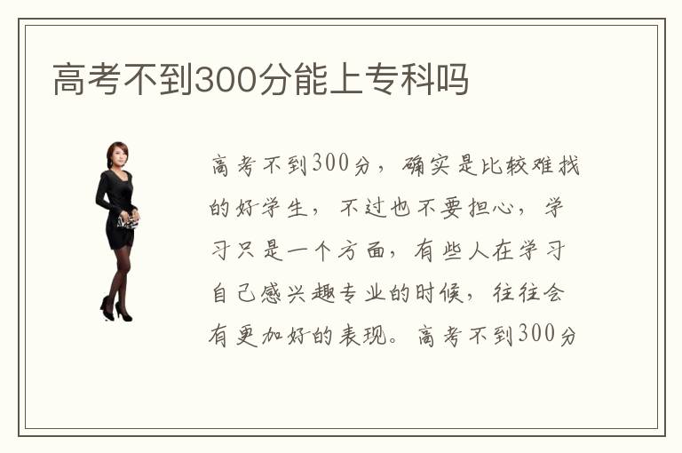 高考不到300分,確實是比較難找的好學(xué)生,不過也不要擔(dān)心,學(xué)習(xí)只是一個方面,有些人在學(xué)習(xí)自己感興趣專業(yè)的時候,往往會有更加好的表現(xiàn)。高考不到300分能上??茊岽髮U?guī)嗎,300分左右其實讀大專還是有好處的,比如更加適合就業(yè),學(xué)習(xí)一技之長,未來找工作更簡單。有些人可能就是吸取教訓(xùn),珍惜讀大專的機會,因此進行專升本,又能提高自身學(xué)歷。高考不到300分能上??茊嵩趺刺暨x學(xué)校,高考不到300分上專科其實也是有作用的,因為有些專科院校的實力還是相當(dāng)不錯,如果學(xué)生在讀完之后有事業(yè)編制的可能或者是考公務(wù)員,研究生等等,當(dāng)然前提條件是要有足夠的專業(yè)能力。有些學(xué)生可能并沒有這樣的實力,優(yōu)勢也不太明顯,所以大家要努力,不斷突破自己,這樣才會擁有更多機會。