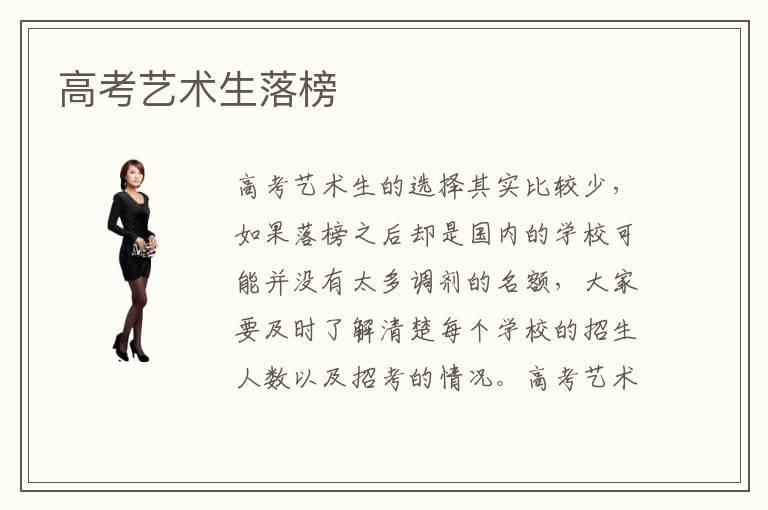 高考藝術(shù)生的選擇其實比較少,如果落榜之后卻是國內(nèi)的學(xué)??赡懿]有太多調(diào)劑的名額,大家要及時了解清楚每個學(xué)校的招生人數(shù)以及招考的情況。高考藝術(shù)生落榜要不要繼續(xù)上學(xué),高考藝術(shù)生落榜了也可以上學(xué)的,其實有很多??圃盒R矔惺账囆g(shù)學(xué)生,所以不要緊張。還有比較適合藝術(shù)生的專業(yè)類型,比如平面設(shè)計,建筑設(shè)計等等,對于有一定基礎(chǔ)的學(xué)生來說,往往可以取得好成績。但還有些人覺得第一次沒考好,可選擇到高中再次復(fù)讀。高考藝術(shù)生落榜專業(yè)挑選,高考藝術(shù)生其實是比較少的,相對于一些普通的理科生和文科生來說,藝術(shù)生的選擇范圍本來就比較窄,如果高考落榜了,那有些人會選擇出國,或者是到復(fù)讀班上課。還有些人會覺得現(xiàn)在的大學(xué)教學(xué)水平不怎么樣,因此準備好創(chuàng)業(yè)資金,開展自己的創(chuàng)業(yè)公司。