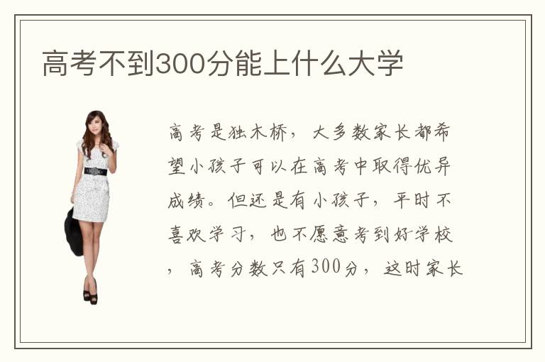 高考是獨(dú)木橋,大多數(shù)家長(zhǎng)都希望小孩子可以在高考中取得優(yōu)異成績(jī)。但還是有小孩子,平時(shí)不喜歡學(xué)習(xí),也不愿意考到好學(xué)校,高考分?jǐn)?shù)只有300分,這時(shí)家長(zhǎng)有時(shí)候會(huì)特別焦慮不安。高考不到300分能上什么大學(xué)大專含金量,大學(xué)大專的含金量通常并沒(méi)有本科高,專業(yè)水準(zhǔn)還算不錯(cuò),總體來(lái)說(shuō)可以培養(yǎng)好的學(xué)生。高考不到300分能上什么大學(xué)哪些專業(yè)好,該選擇熱門的專業(yè)類型,包括計(jì)算機(jī)或者是設(shè)計(jì)專業(yè)等等。高考300分如果在選擇大專的時(shí)候,還是非常明顯的優(yōu)勢(shì),那么就要針對(duì)性考慮自身的專業(yè),包括設(shè)計(jì)專業(yè),軟件開發(fā)專業(yè)以及建筑專業(yè)等等,都屬于技術(shù)類的工作類型,需要專業(yè)的知識(shí)和長(zhǎng)時(shí)間的培訓(xùn),才能夠發(fā)揮職業(yè)的價(jià)值。大家要做好充分的吃苦準(zhǔn)備,每一天都要有新的知識(shí)攝取。
