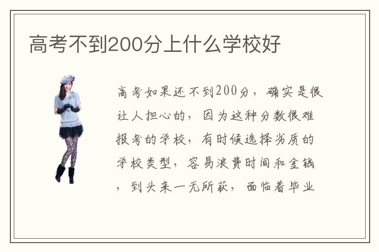 高考如果還不到200分,確實是很讓人擔(dān)心的,因為這種分?jǐn)?shù)很難報考的學(xué)校,有時候選擇劣質(zhì)的學(xué)校類型,容易浪費時間和金錢,到頭來一無所獲,面臨著畢業(yè)就失業(yè)的風(fēng)險。高考不到200分上什么學(xué)校好要不要繼續(xù)讀下去,高考如果才200分,那么還是要繼續(xù)讀下去,因為現(xiàn)在很多工作都至少要大專的水平,如果連大專都沒有,那很容易被他人淘汰。高考不到200分上什么學(xué)校好怎么選專業(yè),在選擇專業(yè)方面,可以考慮實用型的專業(yè)類型,因為大多數(shù)大?;蛘呤歉呗氃盒?,往往就是更加重視實用性的課程,這方面的優(yōu)勢更為明顯。要針對自身的興趣以及擅長的領(lǐng)域進行考慮,有些人擅長畫畫或者是文藝類的類型,但如果看到現(xiàn)在的就業(yè)發(fā)展趨勢,就去學(xué)計算機,其實看上去是非常難適應(yīng)的。