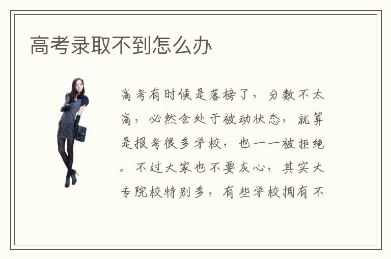 高考有時候是落榜了,分?jǐn)?shù)不太高,必然會處于被動狀態(tài),就算是報考很多學(xué)校,也一一被拒絕。不過大家也不要灰心,其實大專院校特別多,有些學(xué)校擁有不錯水準(zhǔn),資源也更豐富,還是能夠在這些學(xué)校取得很好的專業(yè)優(yōu)勢。高考錄取不到怎么辦大專好不好,大專其實也有水準(zhǔn),更加注重實踐的應(yīng)用,讓學(xué)生可以了解應(yīng)用的知識。高考錄取不到怎么辦高職院校,高考錄取不到確實是讓家長和學(xué)生都很痛苦,因為自己一直夢寐以求很久的大學(xué),到頭來還是一場空。大家也可以考慮高職院校,有些人選擇這些學(xué)校確實是能夠發(fā)揮優(yōu)勢,也能吸取高考的教訓(xùn),不斷優(yōu)化自身的理論知識,結(jié)合未來的實踐,找到更好的就業(yè)方向。其實條條大路通羅馬,大家不要太悲觀,因為只要找到自己的方向,不斷努力下去,總有一天能到達(dá)自己未來的羅馬。