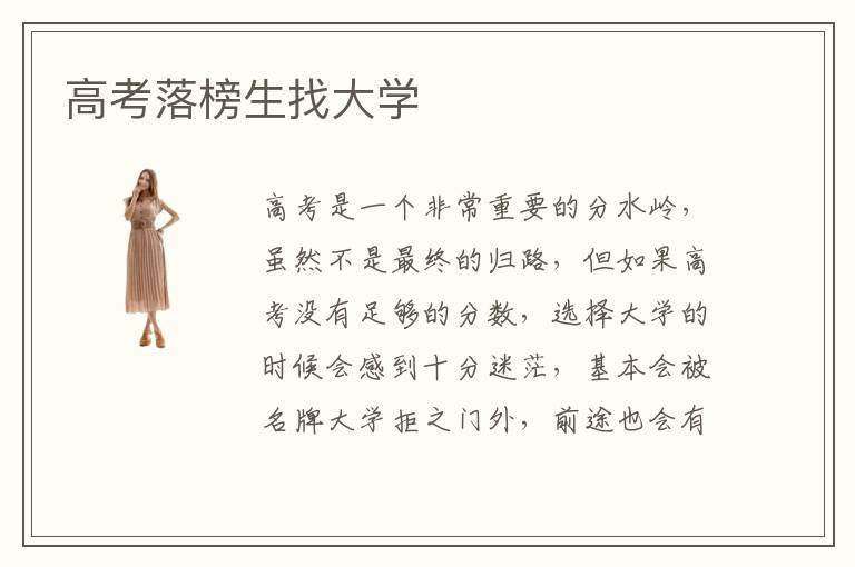 高考是一個(gè)非常重要的分水嶺,雖然不是最終的歸路,但如果高考沒(méi)有足夠的分?jǐn)?shù),選擇大學(xué)的時(shí)候會(huì)感到十分迷茫,基本會(huì)被名牌大學(xué)拒之門(mén)外,前途也會(huì)有點(diǎn)渺茫。高考落榜生找大學(xué)哪些需要考慮的,首先要關(guān)注專(zhuān)業(yè)的優(yōu)勢(shì),有些大學(xué)確實(shí)有非常好的專(zhuān)業(yè),效果也會(huì)比較理想,學(xué)生在這學(xué)習(xí)的過(guò)程中,可以掌握更多實(shí)踐的技能。高考落榜生找大學(xué)哪些參考標(biāo)準(zhǔn),可以先了解學(xué)校的專(zhuān)業(yè)水平,排名情況,綜合實(shí)力,學(xué)習(xí)環(huán)境。也許很多高考畢業(yè)生覺(jué)得考試分?jǐn)?shù)不理想,因此悲觀(guān)失望,覺(jué)得人生就輸了。其實(shí)這也是放大了自身的缺點(diǎn),而忽略了自身的長(zhǎng)處,每個(gè)人都有不同的優(yōu)點(diǎn)和缺點(diǎn),大家要了解,每一種缺點(diǎn)背后其實(shí)就蘊(yùn)含著一個(gè)優(yōu)點(diǎn)。高考也許對(duì)很多人是一次重大的打擊,但不妨把它化為一種悲憤的力量。