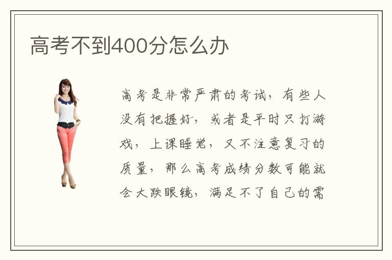 高考是非常嚴(yán)肅的考試,有些人沒有把握好,或者是平時(shí)只打游戲,上課睡覺,又不注意復(fù)習(xí)的質(zhì)量,那么高考成績(jī)分?jǐn)?shù)可能就會(huì)大跌眼鏡,滿足不了自己的需求。高考不到400分怎么辦大專容易找工作嗎,找工作還是相當(dāng)簡(jiǎn)單,因?yàn)楝F(xiàn)在需要大量的科技人才,而大專也是更加注重某些科技的應(yīng)用。有些學(xué)校確實(shí)能夠讓學(xué)生更快上手,不僅僅是理論學(xué)習(xí)。高考不到400分怎么辦專業(yè)優(yōu)勢(shì),高考不到400分可能沒有本科,那這個(gè)時(shí)候不得不考慮排名靠前的專科院校。其實(shí)高考400分左右已經(jīng)接近了本科線,所以大家也會(huì)要有太多悲傷的情緒,及時(shí)找到比較好的學(xué)校類型,其實(shí)也會(huì)擁有好成績(jī)的。很多人在選學(xué)校的時(shí)候,只關(guān)注到學(xué)習(xí)的費(fèi)用,卻沒有了解過學(xué)習(xí)的效果,老師的水準(zhǔn)等等,其實(shí)很容易影響教學(xué)的質(zhì)量,那未來學(xué)習(xí)幾年之后,可能還是一無所獲,徒勞無功。