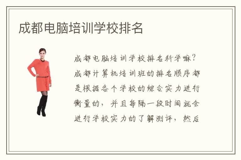 成都電腦培訓(xùn)學(xué)校電腦培訓(xùn)學(xué)校排名科學(xué)嘛?成都計(jì)算機(jī)培訓(xùn)班的排名順序都是根據(jù)各個(gè)學(xué)校的綜合實(shí)力進(jìn)行衡量的,并且每隔一段時(shí)間就會(huì)進(jìn)行學(xué)校實(shí)力的了解測(cè)評(píng),然后及時(shí)更新排名順序,這樣就保證了成都計(jì)算機(jī)培訓(xùn)班排名的科學(xué)準(zhǔn)確性。成都電腦培訓(xùn)班有哪些項(xiàng)目開(kāi)展?成都電腦培訓(xùn)機(jī)構(gòu)的教育理念先進(jìn),主要匯聚了各地的計(jì)算機(jī)人才進(jìn)行教育實(shí)踐。成都電腦培訓(xùn)機(jī)構(gòu)怎么樣?
