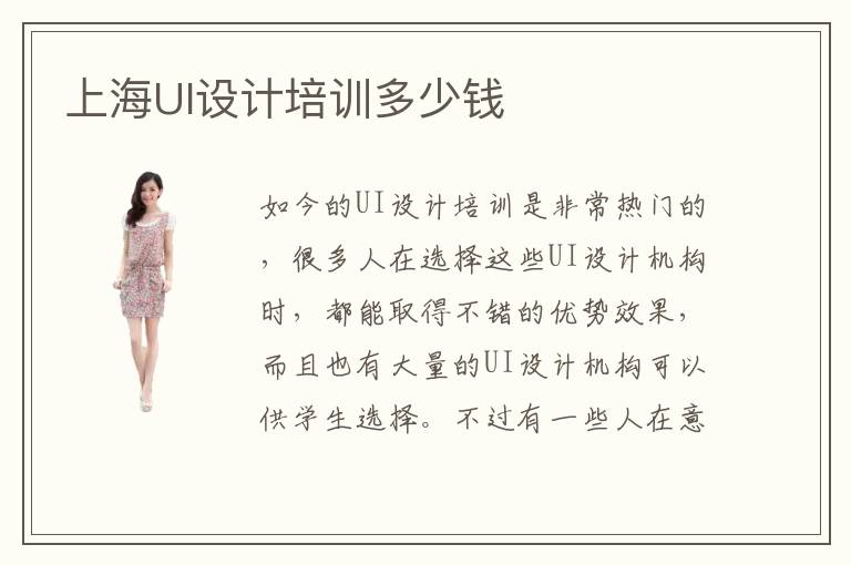如今的UI設計培訓是非常熱門的,很多人在選擇這些UI設計機構時,都能取得不錯的優(yōu)勢效果,而且也有大量的UI設計機構可以供學生選擇。不過有一些人在意這些機構學習的時候,很擔心成本太高,那么自己的經(jīng)濟會有壓力。那么可以先關注上海UI設計培訓多少錢,了解大概的報名費用和收費標準。上海UI設計培訓多少錢是值得選擇的,UI設計培訓的費用應該是不太一致的,有些課程內(nèi)容可以設置的比較先進,也能緊隨時代的發(fā)展,因此收費費用會貴一點。上海UI設計培訓多少錢介紹,但有些基礎性的課程內(nèi)容可能收費標準不需要太高,所以大家不要擔心,可以先看自己的實際能力。但如果不知道如何決定,可以先通過培訓機構的學前評測,然后根據(jù)自身的能力以及基本的分數(shù)確定課程內(nèi)容。