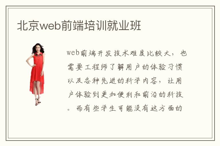 web前端開發(fā)技術(shù)難度比較大,也需要工程師了解用戶的體驗(yàn)習(xí)慣以及各種先進(jìn)的科學(xué)內(nèi)容,讓用戶體驗(yàn)到更加便利和前沿的科技。而有些學(xué)生可能沒有這方面的經(jīng)驗(yàn),因此想要不斷優(yōu)化自己的知識(shí)能力,參與北京web前端培訓(xùn)web前端培訓(xùn)就業(yè)班,那么可以多關(guān)注每個(gè)web前端培訓(xùn)機(jī)構(gòu)的特色和優(yōu)勢(shì)、口碑等等。北京web前端培訓(xùn)效率通常是比較優(yōu)越的,因?yàn)槔蠋熕疁?zhǔn)高,專業(yè)能力強(qiáng),對(duì)學(xué)生的要求比較可靠,因此未來的進(jìn)步會(huì)更加大。北京web前端培訓(xùn)潛力是非常大的,因?yàn)榭梢愿俞槍?duì)企業(yè)的應(yīng)用來講解知識(shí)的內(nèi)容。有些傳統(tǒng)的院校還是停留在以前的按部就班講解,根本就不注重實(shí)際的運(yùn)用,也不考慮學(xué)生的需求,當(dāng)然很難凸顯出教育的成果,但是就業(yè)培訓(xùn)班就可以改善這些缺陷。