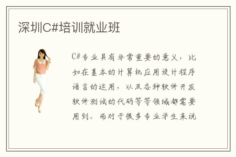 C#專業(yè)具有非常重要的意義,比如在基本的計算機應用設計程序語言的運用,以及各種軟件開發(fā)軟件測試的代碼等等領域都需要用到。而對于很多專業(yè)學生來說可能會比較困惑,因為沒有了解過正確的應用,因此在學習的時候效率會很低,那么可以考慮深圳C#培訓就業(yè)班,老師會更加側(cè)重于學生的專業(yè)就業(yè)能力,進行適當?shù)呐囵B(yǎng),讓學生在C#專業(yè)的應用方面擁有更強的特色和優(yōu)勢。深圳C#培訓就業(yè)班質(zhì)量一般都有保障,因為有些學生可能自學能力比較差,又或者是平時只有理論的知識學習,卻沒有正確的應用,那么可以通過C#專業(yè)的就業(yè)指導班來提升,而這個時候教學的質(zhì)量會比較明顯。深圳C#培訓就業(yè)班有哪些特色,主要在于老師的能力比較高,讓學生可以始終和老師相互交流切磋,學生就可以取得更加優(yōu)異的成績。