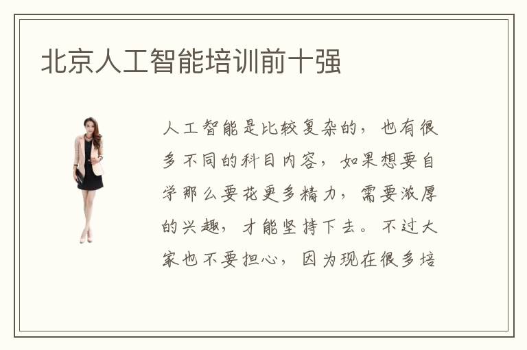 人工智能是比較復雜的,也有很多不同的科目內容,如果想要自學那么要花更多精力,需要濃厚的興趣,才能堅持下去。不過大家也不要擔心,因為現(xiàn)在很多培訓機構可以幫助大家提升專業(yè)能力,同時也對人工智能更感興趣。大家可以找到北京人工智能培訓前十強,選擇更加專業(yè)的人工智能培訓老師,從而得到更好的人工智能發(fā)展成績。北京人工智能培訓前十強效率,如果人工智能的培訓機構專業(yè)能力強,學習效率高,那么教學成果當然就可以更能夠獲得大家的肯定。北京人工智能培訓前十強好不好,人工智能培訓的專業(yè)水準其實跟很多因素是相關的,包括學生的基礎、努力的程度以及教學老師的水平、人工智能培養(yǎng)的方案,如果連基本的培養(yǎng)方案都沒有提供,那么學生在學習人工智能領域知識時,可能就會缺乏方向,走很多岔路。
