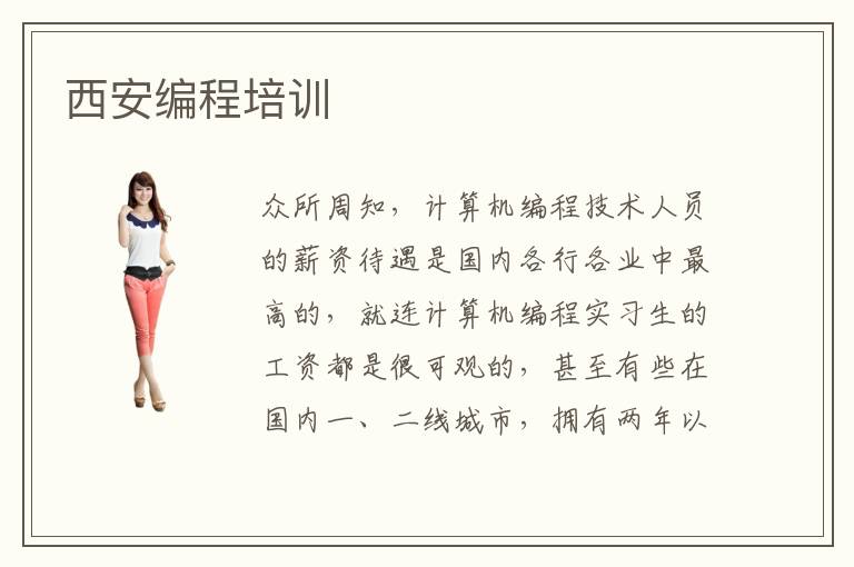 眾所周知,計算機編程技術(shù)人員的薪資待遇是國內(nèi)各行各業(yè)中最高的,就連計算機編程實習(xí)生的工資都是很可觀的,甚至有些在國內(nèi)一、二線城市,擁有兩年以上計算機編程設(shè)計相關(guān)工作經(jīng)驗的編程工程師,已經(jīng)達到了月收入過萬的高標(biāo)準(zhǔn)了。那么,西安編程培訓(xùn)所需要的學(xué)習(xí)費用是多少呢?不同的培訓(xùn)學(xué)校收取的培訓(xùn)費是不同的,具體還是要按照它們的收費標(biāo)準(zhǔn)決定的。
