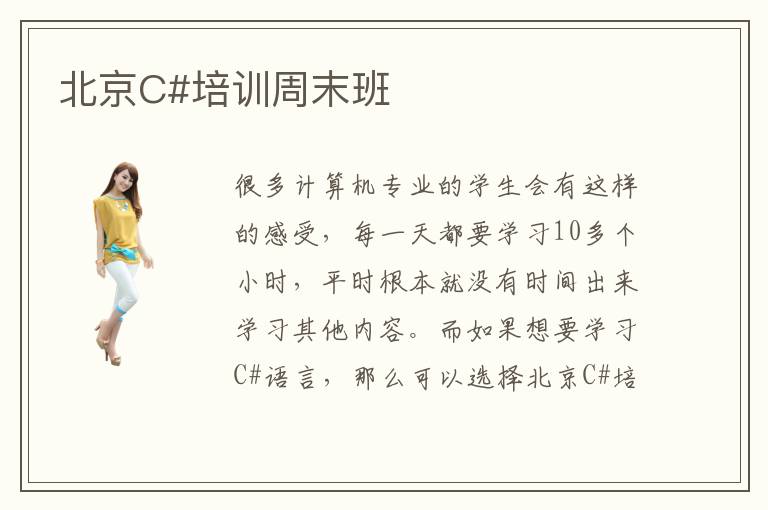 很多計(jì)算機(jī)專業(yè)的學(xué)生會(huì)有這樣的感受,每一天都要學(xué)習(xí)10多個(gè)小時(shí),平時(shí)根本就沒(méi)有時(shí)間出來(lái)學(xué)習(xí)其他內(nèi)容。而如果想要學(xué)習(xí)C#語(yǔ)言,那么可以選擇北京C#培訓(xùn)周末班,利用周末的時(shí)間,往往可以得到非常高的效率。北京C#培訓(xùn)周末班怎么選,其實(shí)要考慮好幾個(gè)因素,包括培訓(xùn)方案、培訓(xùn)內(nèi)容、C#培訓(xùn)質(zhì)量、培訓(xùn)效果。因?yàn)楝F(xiàn)在有相當(dāng)多C#培訓(xùn)機(jī)構(gòu)的老師能力都非常強(qiáng),而且在工作崗位已經(jīng)很多年,因此學(xué)生的進(jìn)步都非常大,可以掌握很多工作方面的內(nèi)容,而不是傳統(tǒng)照本宣科學(xué)習(xí)模式。北京C#培訓(xùn)周末班培訓(xùn)質(zhì)量一般都很強(qiáng)的,主要是師資力量雄厚,而且配套設(shè)施完善。因?yàn)镃#培訓(xùn)的課程內(nèi)容更加講究實(shí)踐和應(yīng)用,如果只是停留在理論的知識(shí)學(xué)習(xí),那么學(xué)生猶如紙上談兵,一點(diǎn)進(jìn)步都沒(méi)有。