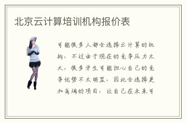 可能很多人都會(huì)選擇云計(jì)算的機(jī)構(gòu),不過由于現(xiàn)在的競爭壓力太大,很多學(xué)生可能擔(dān)心自己的競爭優(yōu)勢(shì)不太明顯,因此會(huì)選擇更加高端的項(xiàng)目,讓自己在未來可以取得更顯著的進(jìn)步,因此在職場生涯中也能保證不錯(cuò)的優(yōu)勢(shì),從而擁有更廣闊的發(fā)展空間。北京云計(jì)算培訓(xùn)云計(jì)算培訓(xùn)機(jī)構(gòu)報(bào)價(jià)表當(dāng)然只是一個(gè)參考,因?yàn)?a href="/it/detail6615.html">云計(jì)算培訓(xùn)機(jī)構(gòu)的價(jià)格其實(shí)還是有好多個(gè)角度來判斷,包括服務(wù)質(zhì)量、學(xué)生的成績、品牌口碑效應(yīng)等等。北京云計(jì)算培訓(xùn)機(jī)構(gòu)報(bào)價(jià)表大概范圍可能在3600~7500元,當(dāng)然這些只是比較廣泛的價(jià)格范圍。如果想要了解具體的費(fèi)用,應(yīng)該要結(jié)合自己的專業(yè)需要來進(jìn)行咨詢,也許可以得到更準(zhǔn)確的答案。北京云計(jì)算培訓(xùn)機(jī)構(gòu)報(bào)價(jià)表要多貴,大多數(shù)都很適中,只要幾千塊錢就可以搞定很多課程內(nèi)容,包括專業(yè)培訓(xùn)班、業(yè)余興趣愛好班。