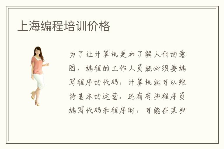 為了讓計(jì)算機(jī)更加了解人們的意圖,編程的工作人員就必須要編寫程序的代碼,計(jì)算機(jī)就可以維持基本的運(yùn)營。還有有些程序員編寫代碼和程序時(shí),可能在某些專業(yè)領(lǐng)域還不算特別熟練,也可能會(huì)編不下去,這個(gè)時(shí)候可以有專業(yè)的編程培訓(xùn)機(jī)構(gòu)幫忙,了解自己的缺點(diǎn),然后再不斷去優(yōu)化,讓自己的編程技術(shù)更加成熟。上海編程培訓(xùn)價(jià)格其實(shí)也應(yīng)該有好幾個(gè)角度,比如專業(yè)的能力不一樣,因此的課程設(shè)置方案以及培訓(xùn)的方法存在區(qū)別。另外有些老師確實(shí)擁有不錯(cuò)水準(zhǔn),因此收費(fèi)標(biāo)準(zhǔn)方面就會(huì)更加貴。上海編程培訓(xùn)價(jià)格貴不貴,其實(shí)不同的老師、不同的培訓(xùn)方案、不同的資源設(shè)置等等,都會(huì)影響具體的培訓(xùn)價(jià)格。上海編程培訓(xùn)價(jià)格影響因素一般是要看老師的能力、專業(yè)的培養(yǎng)方案以及資源情況等等,如果資源比較多,應(yīng)該來說是更有保障的。