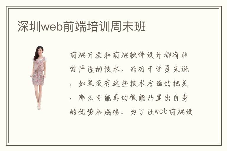 前端開發(fā)和前端軟件設(shè)計都有非常嚴(yán)謹(jǐn)?shù)募夹g(shù),而對于學(xué)員來說,如果沒有這些技術(shù)方面的把關(guān),那么可能真的很能凸顯出自身的優(yōu)勢和成績。為了讓web前端設(shè)計專業(yè)能力更強(qiáng),取得更好的成績,大家可以多考慮深圳web前端培訓(xùn)周末班,充分利用這些休息時間,再凸顯出自身的專業(yè)成果。深圳web前端培訓(xùn)周末班容易嗎,大多數(shù)都還是比較合適的,都有很多web前端設(shè)計專業(yè)的人群,如果想要找到合適的教學(xué)方案,那么可以由專業(yè)的培訓(xùn)輔導(dǎo)班進(jìn)行設(shè)置。深圳web前端培訓(xùn)周末班如何,如果是一些很高端的web前端培訓(xùn)課程,雖然說一個星期只有兩天上課的時間,但是學(xué)習(xí)費用可能在5000元到8500元左右。所以學(xué)生自己要去對比各種不同的培訓(xùn)方法,培訓(xùn)的質(zhì)量以及培訓(xùn)課程的大概收費標(biāo)準(zhǔn)等等。