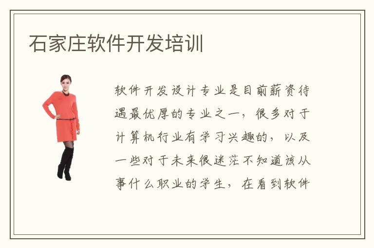 軟件開發(fā)設(shè)計(jì)專業(yè)是目前薪資待遇最優(yōu)厚的專業(yè)之一,很多對(duì)于計(jì)算機(jī)行業(yè)有學(xué)習(xí)興趣的,以及一些對(duì)于未來很迷茫不知道該從事什么職業(yè)的學(xué)生,在看到軟件開發(fā)設(shè)計(jì)工程師在國內(nèi)逛受歡迎的情況后,做好了學(xué)習(xí)軟件開發(fā)設(shè)計(jì)專業(yè)的準(zhǔn)備。那么,對(duì)于學(xué)習(xí)軟件開發(fā)設(shè)計(jì)這一專業(yè),你知道有哪些需要注意的地方嘛?你知道石家莊軟件開發(fā)培訓(xùn)主要的課程安排是怎樣的嘛?