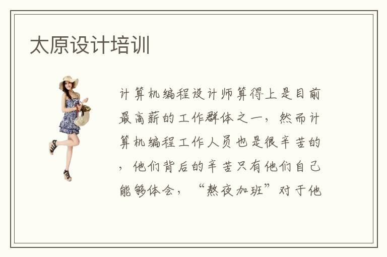 計(jì)算機(jī)編程設(shè)計(jì)師算得上是目前最高薪的工作群體之一,然而計(jì)算機(jī)編程工作人員也是很辛苦的,他們背后的辛苦只有他們自己能夠體會,“熬夜加班”對于他們來說都是再平常不過的事情了。正因如此,很多專業(yè)的計(jì)算機(jī)編程培訓(xùn)編程培訓(xùn)機(jī)構(gòu)主要是培養(yǎng)想要學(xué)習(xí)編程專業(yè)的學(xué)生一些操作簡單、功能強(qiáng)大的編程手法,因此,也就出現(xiàn)了太原java語言編程設(shè)計(jì)培訓(xùn)機(jī)構(gòu)。