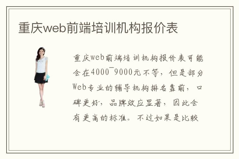 重慶web前端培訓(xùn)機(jī)構(gòu)報(bào)價(jià)表可能會(huì)在4000~9000元不等,但是部分Web專業(yè)的輔導(dǎo)機(jī)構(gòu)排名靠前,口碑更好,品牌效應(yīng)顯著,因此會(huì)有更高的標(biāo)準(zhǔn)。不過如果是比較高端的課程內(nèi)容,應(yīng)該是要選擇知名的大機(jī)構(gòu),這樣效果會(huì)更明顯。web前端培訓(xùn)機(jī)構(gòu)教學(xué)特色主要就是為學(xué)生提供輕松的學(xué)習(xí)方案,因?yàn)橛行┱n程可能會(huì)存在一點(diǎn)難度,而對(duì)于剛起步的學(xué)生,可能并沒辦法全面了解和掌握。為了提高教育的成果,改善教育的質(zhì)量,學(xué)校會(huì)提供大量的優(yōu)質(zhì)的輕松的方法,讓學(xué)生可盡快適應(yīng)這些課程,減少Web培訓(xùn)的壓力。web前端培訓(xùn)機(jī)構(gòu)有沒有壓力,其實(shí)有很多課程都是可以適當(dāng)改善學(xué)生的壓力,也可以通過多種學(xué)習(xí)的方案,讓學(xué)生可以盡快掌握到的知識(shí)內(nèi)容,不用擔(dān)心學(xué)習(xí)效率下降或是知識(shí)不全面的情況。