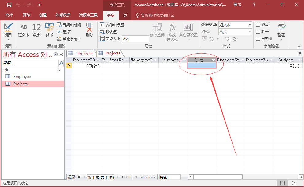 如果想要對(duì)此表或任何特定字段進(jìn)行更改,則不必始終返回到設(shè)計(jì)視圖進(jìn)行更改??梢詮臄?shù)據(jù)表視圖中進(jìn)行更改。例如要更新PStatus字段,如以下屏幕截圖所示。