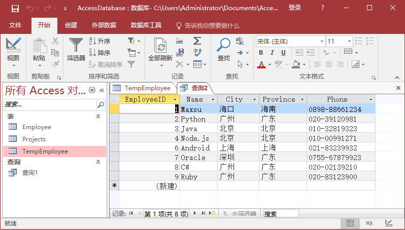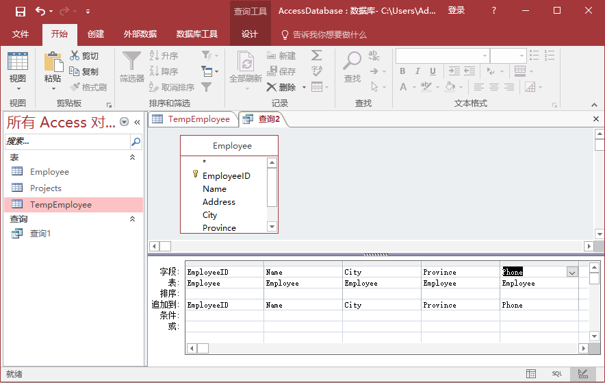 4種不同類型的操作查詢 -可以使用添加查詢從一個或多個表中檢索數(shù)據(jù),并將該數(shù)據(jù)添加到另一個表。 讓我們創(chuàng)建一個新的表,它使用Employees表中數(shù)據(jù)來填充。它用于演示目的的臨時表。