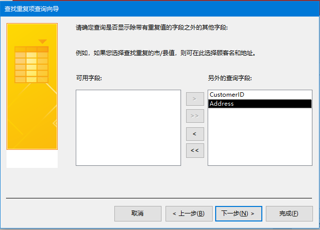 此向?qū)е械囊韵缕聊粚⒁笪覀円诓樵冎酗@示的字段。點(diǎn)擊雙箭頭,所有字段將移到附加查詢字段區(qū)域,并將添加到查詢結(jié)果中。