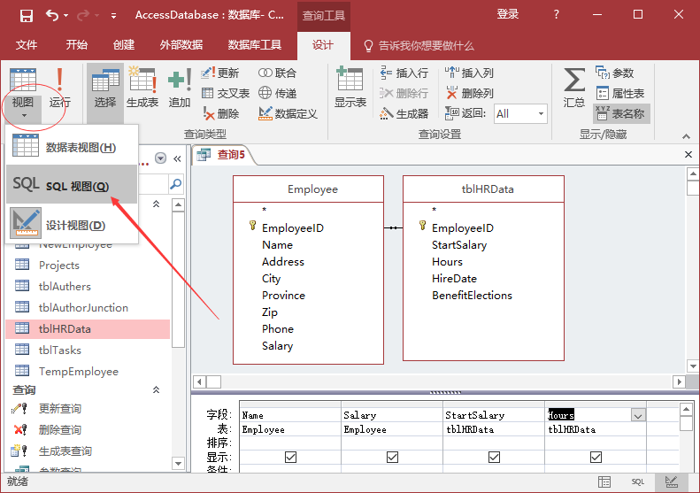 要查看SQL,請(qǐng)轉(zhuǎn)到“主頁”選項(xiàng)卡。 從視圖菜單中選擇SQL視圖,將看到您的查詢的SQL。