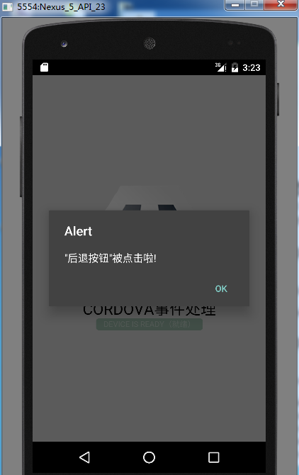 現(xiàn)在,當(dāng)我們按下原生的Android后退按鈕,警告提示就會(huì)出現(xiàn)在屏幕上,而不是退出應(yīng)用程序。這是通過使用 e.preventDefault()完成。