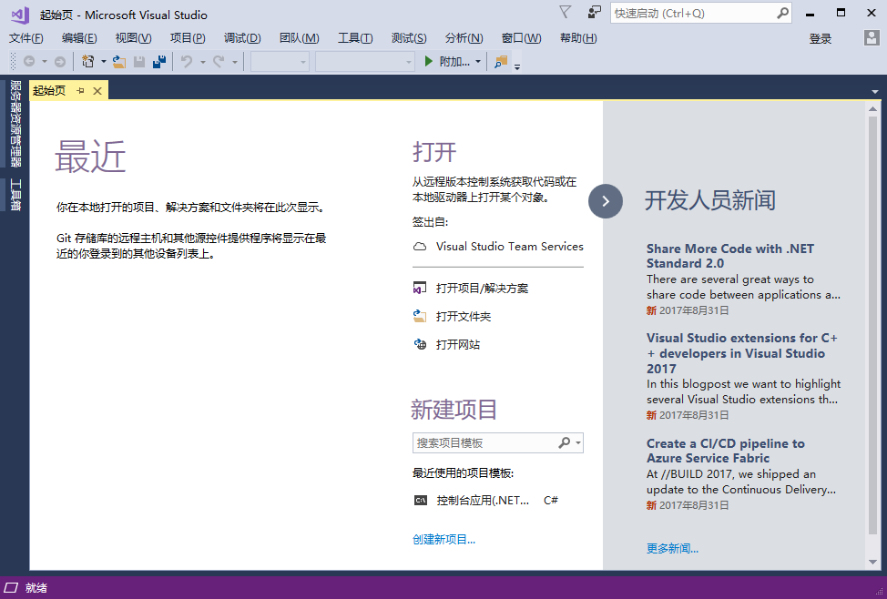 首先打開 Visual Studio 2017 社區(qū)版,如下圖所示 -