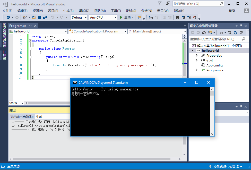 Console.WriteLine("Hello World! - By using namespace. ");