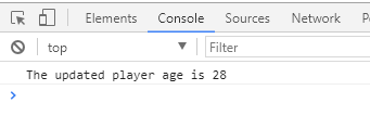 console.log("The updated player age is " + player.age);