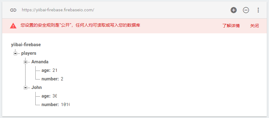 可以在Firebase控制臺中將Amanda的age字段的值由21更改為28以獲取更新。