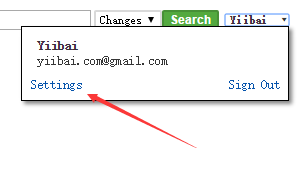 接著在右上角,點(diǎn)擊您的用戶名,然后選擇設(shè)置(Settings)選項(xiàng)。在這里,我們創(chuàng)建了一個(gè)名為Yiibai的帳戶,以用來(lái)演示Gerrit的使用和演示。