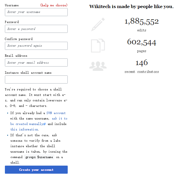 首先在 wmflabs.org 服務(wù)創(chuàng)建一個(gè)帳戶。