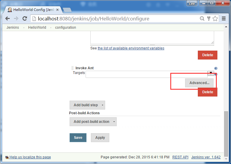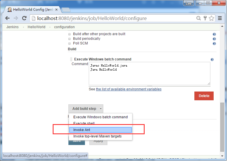 第2步 - 瀏覽到部分添加生成步驟和選擇調(diào)用Ant選項(xiàng)。
