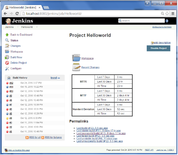 有各種插件這些都是 Jenkins 用以展示進行了一段時間構(gòu)建度量。這些指標是用于了解您的構(gòu)建,以及它們?nèi)绾喂收?通過一段時間。作為一個例子,讓我們來看看“Build History Metrics plugin”。