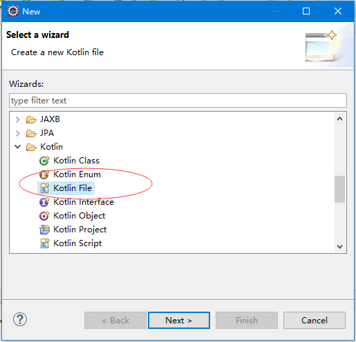 如果在文件名中省略“.kt”擴(kuò)展名,Eclipse將自動(dòng)添加。