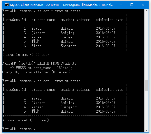 MariaDB DELETE語句用于從MariaDB數(shù)據(jù)庫的表中刪除一個或多個記錄。