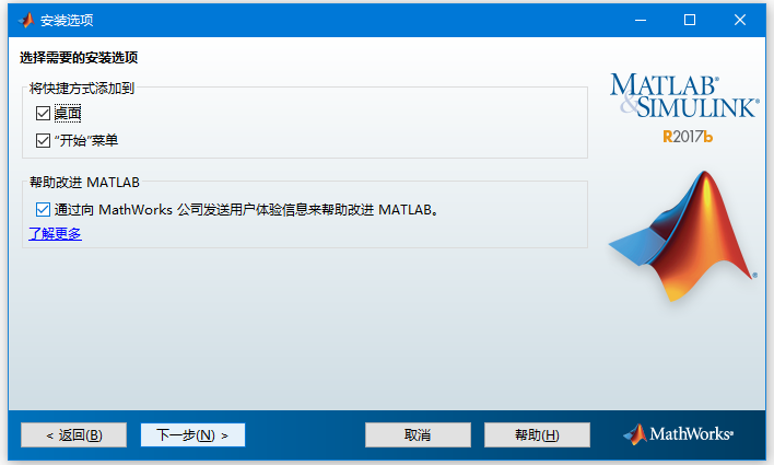 第五步:選擇軟件安裝的位置(D:\Program Files\MATLAB\R2017b)并點擊下一步,如下圖所示 -