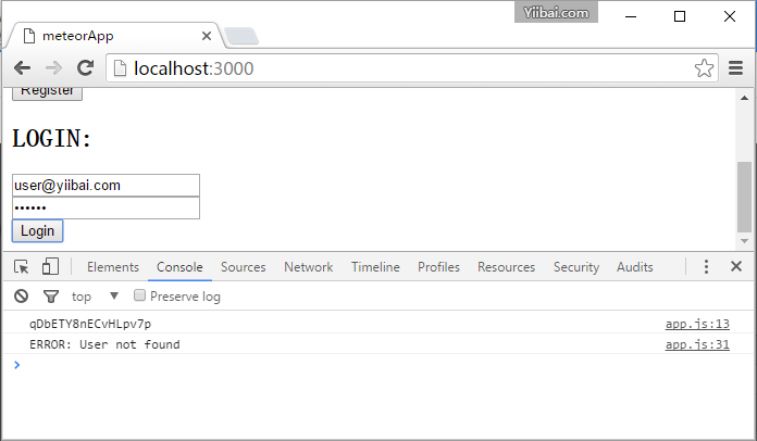 登錄事件將檢查數(shù)據(jù)庫并日志記錄用戶信息,檢查電子郵件地址和密碼是否正確。如果不正確,控制臺將記錄一個錯誤。