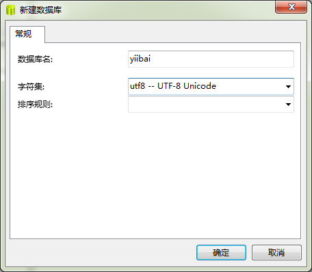 創(chuàng)建數(shù)據(jù)庫:yiibai,使用 utf-8 編碼。