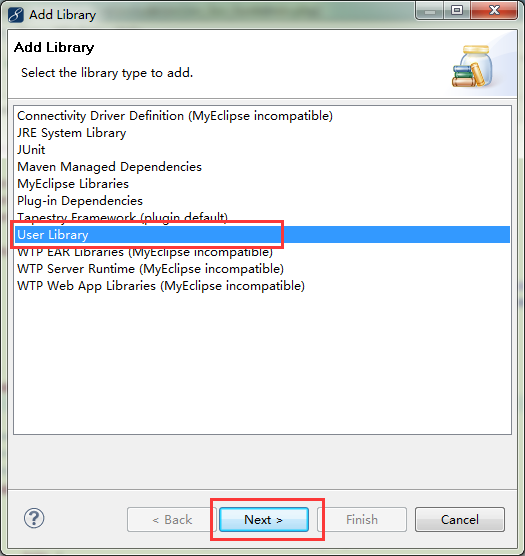點擊“User Libararies...",繼續(xù)下一步,創(chuàng)建一個新的類庫,如下圖所示: