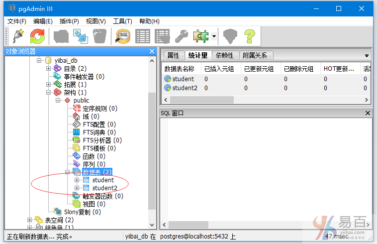 在SQL編輯器中編寫以下SQL語句,來創(chuàng)建另一個表:student2 -